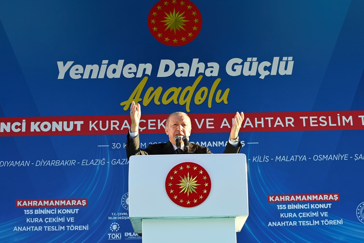 Cumhurbaşkanı Recep Tayyip Erdoğan, Kahramanmaraş’ta 155 bininci deprem konutu teslimini gerçekleştirdi. Deprem felaketinin yaralarını sarmak için gece gündüz çalıştıklarını söyleyen Erdoğan, konuşmasında CHP’ye yüklenip, “Buradan CHP Genel Başkanı Sayın Özel’e diyorum ki; Ankara’da siyasetçilik oynamak yerine gel eser ve hizmet siyaseti nasıl yapılırmış, Kahramanmaraş’ta gör.” dedi. Cumhurbaşkanı Erdoğan törenin ardından AK Parti’de kongre sürecini başlattı. AK Parti Kahramanmaraş 8. Olağan İl Kongresi’nde konuşan Erdoğan, “Allah’ın izniyle o kara günleri geride bıraktık. Maraş’ı adeta küllerinden yeniden doğarcasına yeniden inşa ediyoruz.” dedi. Milletin sandık yoluyla mesaj verdiğine vurgu yapan Erdoğan, "Partimizde kadrolar değişir, hizmet sevdamız değişmez" diye konuştu. Konuşmasında terörle mücadede kararlılık mesajı da veren Erdoğan, "Evlatlarımıza terörün sıfırlandığı bir ülke teslim etmekte kararlıyız. Türkiye'nin gelecek vizyonuna ayak bağı olan terör prangasını parçalayacağız. Terörü kaynağında çözme irademiz hiç olmadığı kadar güçlü. Bu hedef için cesur, kararlı, yeni adımlar atmaktan çekinmeyeceğiz" dedi.